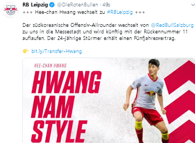 라이프치히 이적료+계약 기간, 등번호, 연봉 황희찬은 2020년 7월 8일 rb 라이프치히로 이적을 확정 지었고, 계약 기간은 5년 , 등번호는 티모 베르너가 달았던 11번 을 물려받았습니다.